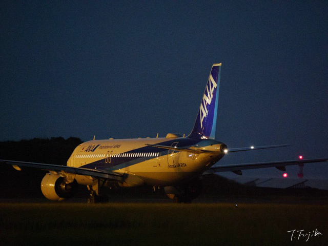 先日、NH297便が大幅にディレイしたので日没後の時間帯で撮影する機会を得た。