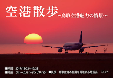鳥取空港を拠点に飛行機写真撮影活動を行う作者が、飛行機写真に取り組み始めてから撮りためた鳥取空港の様々な飛行機写真からの選りすぐりの作品を展示いたします。 1日5便という少ない便数での限られたシャッターチャンスから紡ぎ出した魅力的な飛行機のいる情景を感じてください。